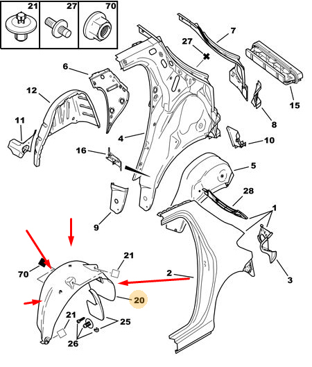 ORİJİNAL 307 SAĞ ARKA ÇAMURLUK DAVLUMBAZI HATCBACK 8530XC