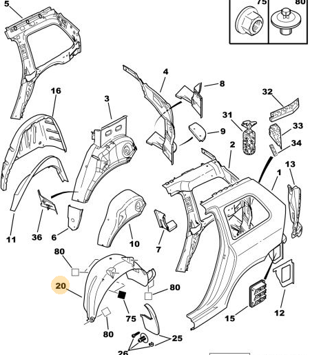 ORİJİNAL 307 SW SAĞ ARKA ÇAMURLUK DAVLUMBAZI 8530XE